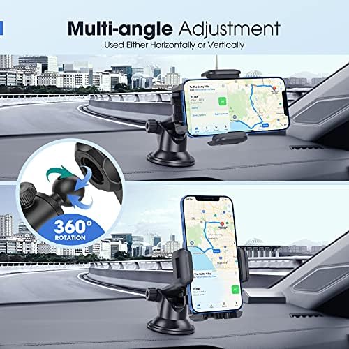 【Install in Seconds】 You can release or lock your mobile device with single hand. The lever on the suction cup provides strong gripping on the dashboard or windshield, keeping it fixed throughout your drive. The car mount features three different ways to move and adjust, including adjustable arm length, rotatable arm, and a 360° joint Ball to help you find the most suitable angle for safe driving,enjoy hands free calls while driving, safeguarding the Safety of taking a call.