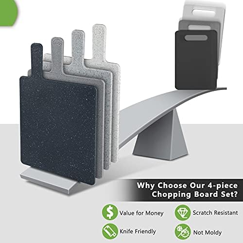 Chopping Board Set, Plastic Colour Coded with Stand, Dishwasher Safe, BPA Free, Durable Kitchen Cutting Boards, Small Serving Tray for Camping, Flexible Easy Grip Handle for Meat, Veg (Grey)