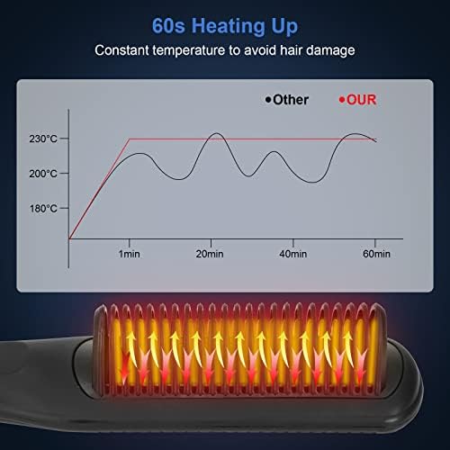 【Adjustable 3 Heat Settings for All Hair Types】 The setting temperature of the hair straightener brush can be set between 180℃ and 230℃ according to your hair type, with 3 heat (180/200/230℃) settings. 180℃ is suitable for soft/fine/thin hair, 200℃ is suitable for natural curly hair, and 230℃ is suitable for thick/coarse hair.