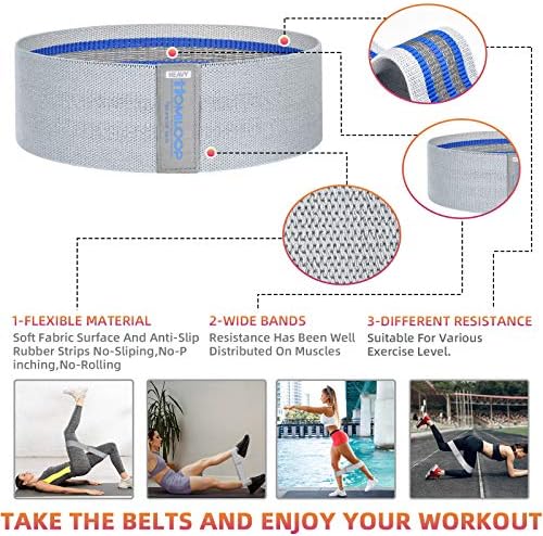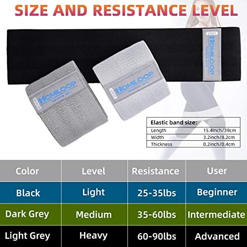 HOMILOOP Resistance Bands,Non Slip Exercise Bands Set for Legs/Butt/Core Training,Set of 3 Elastic Fabric Workout Bands of Home Gym Accessories,Cloth Straps Kit for Men Women,Booty Shaping Equipment