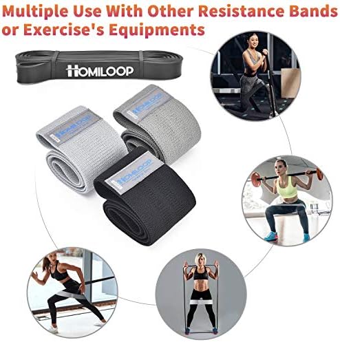 What’s in the bag? HOMILOOP Resistance bands set include:3*Fabric Resistance bands,1*Carry Bag,1*Guide,Added Value:1*Long Latex Resistance band.