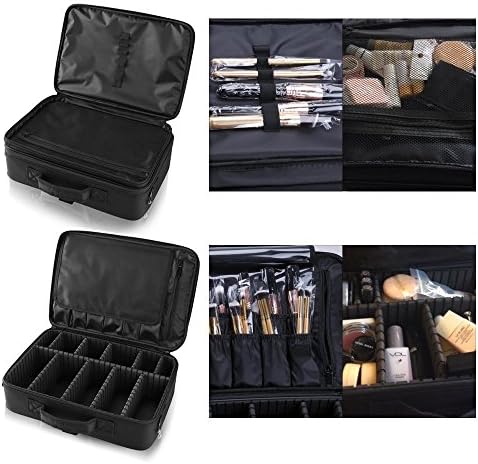 Hotrose Makeup Bag Cosmetic Case Portable Travel Beauty Box Waterproof Makeup Bag Organiser Bag Makeup Artist Bag Multifunction Bag with Removable Compartment (Black, Large) (Black 1)