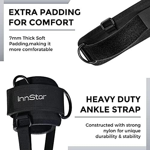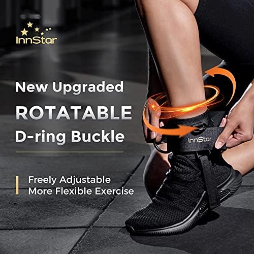 INNSTAR Ankle Straps for Cable Machines, SoftPadded Ankle Cuffs for Kickbacks, Glute Workouts, Leg Extension, And Hip Abductors, Upgraded Adjustable Steel D-Ring Gym Cuff with Fixed Rope for Women&Men