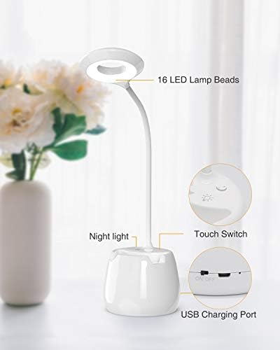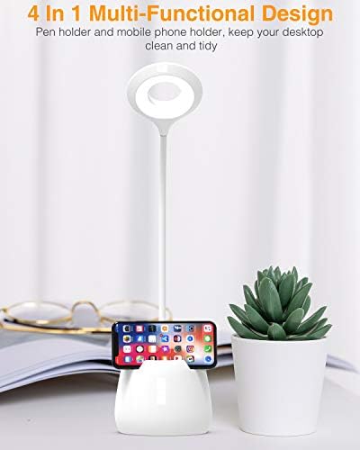 ✅[Versatile LED Desk Light]:①【The Pen Holder Design】Save space and more tidy; ②【The Phone Holder Design】 Convenient for watching videos; ③【The Night Light Design 】As a mood light for create warm atmosphere; ④【The Basic Design】As an auxiliary lamp for reading, working, eye-protection & anti-radiation and longer lifespan. ⑤ This lovely white lamp is also the best gifts 🎁 for your child, grandkids, lover, parents, partner, workmate and relatives, etc.