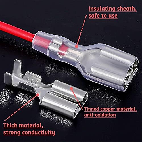【Easy to use】 Male female spade connectors provide you with a secure connection between two wires, no need to solder, you just connect the male and female connectors at both ends, you can also disconnect them when you don’t need them