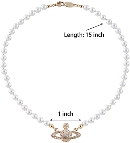 Vivienne Westwood Saturn Pearl Necklace diamante orb necklace Orb and Saturn ring pendant with Swarovski crystals, metal logo charm