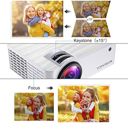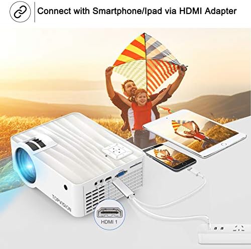 Projector, TOPVISION 7500L Mini Portable Projector with 100″Projector Screen, Support 1080P HD Outdoor Projector 240″ Home Theater Compatible with Fire Stick, HDMI, VGA, USB, TF, AV, PS4