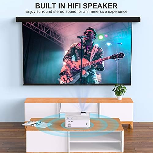 【Built-in HiFi Stereo Speaker】The video projector has high-definition stereo speakers, the latest dual fan system, and a powerful heat dissipation system that can reduce noise, cool the heat of the lamp, and extend the lamp life to 60,000 hours, which means you can use it for more than 15 years. You can also connect external speakers with 3.5mm audio output for better sound.