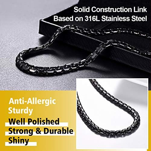 About the product PROSTEEL 4/6MM Box Chain Necklace/Bracelet, Unisex, 18/20/22/24/26/28/30 inch, Stainless Steel/Gold Plated/Black Color (with Gift Box,Pouch)