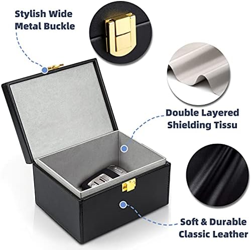 [PREMIUM LEATHER OF CAR KEY SECURITY BOX ] : Wooden + leather faraday box has stronger shielding function,100% to block all signals.It looks way more elegant and luxury, high-end grade.