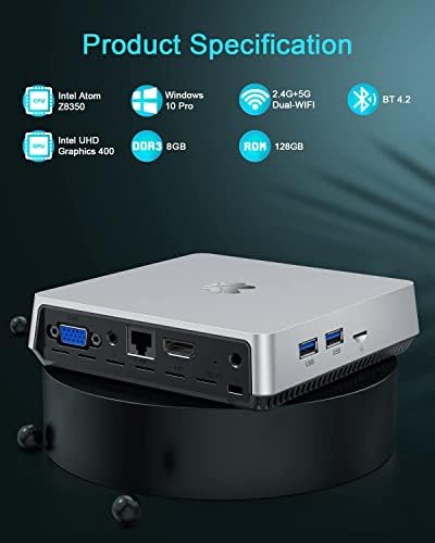SNUNMU Mini PC, 8 GB DDR3/128 GB eMMC,Windows 10 Pro Fanless Mini Computer, Intel Atom Z8350 Desktop Computer,Support 4K HD, HDMI + VGA Output, 2.4G/5G WiFi, Bluetooth, Gigabit Ethernet