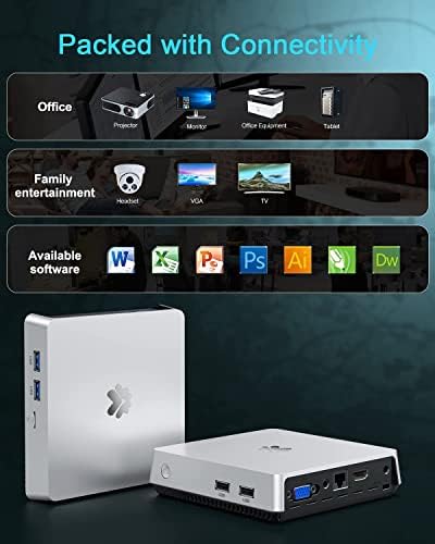 [Fanless Mini Computer]—The fanless design ensures quiet and maintenance-free operation, built-in a HDMI port and VGA port to support dual display. Meanwhile, 4K HD for home visual entertainment, HTPC, perfect for home office, light games, digital security and surveillance, digital signage, media center, conference room, etc.