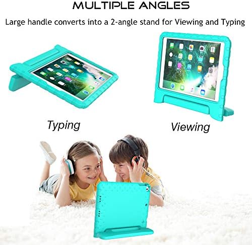 Surom Case for New iPad 9.7 Inch 2018/2017 – ShockProof Case Light Weight Kids Case Cover with Handle Stand Case for iPad 9.7 Inch 2018 & 2017 Release/iPad Air/iPad Air 2 Tablet, Turquoise