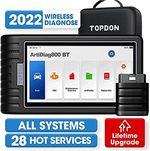 TOPDON ArtiDiag800BT Car Diagnostic Tool, All Systems Scan Tool with 28 Maintenance Services, obd2 wireless diagnostic scanner, Oil Reset/EPB/SAS/TPMS, AutoVIN, Free Lifetime Upgrade