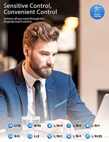 【Touch Control, LED Power Display】Controlling the headphones comes easy for your fingertips to answer/end a call, play music, and activate voice assistant. To make it more convenient for your daily use, we get a LED display on the charging case, telling the real-time battery.